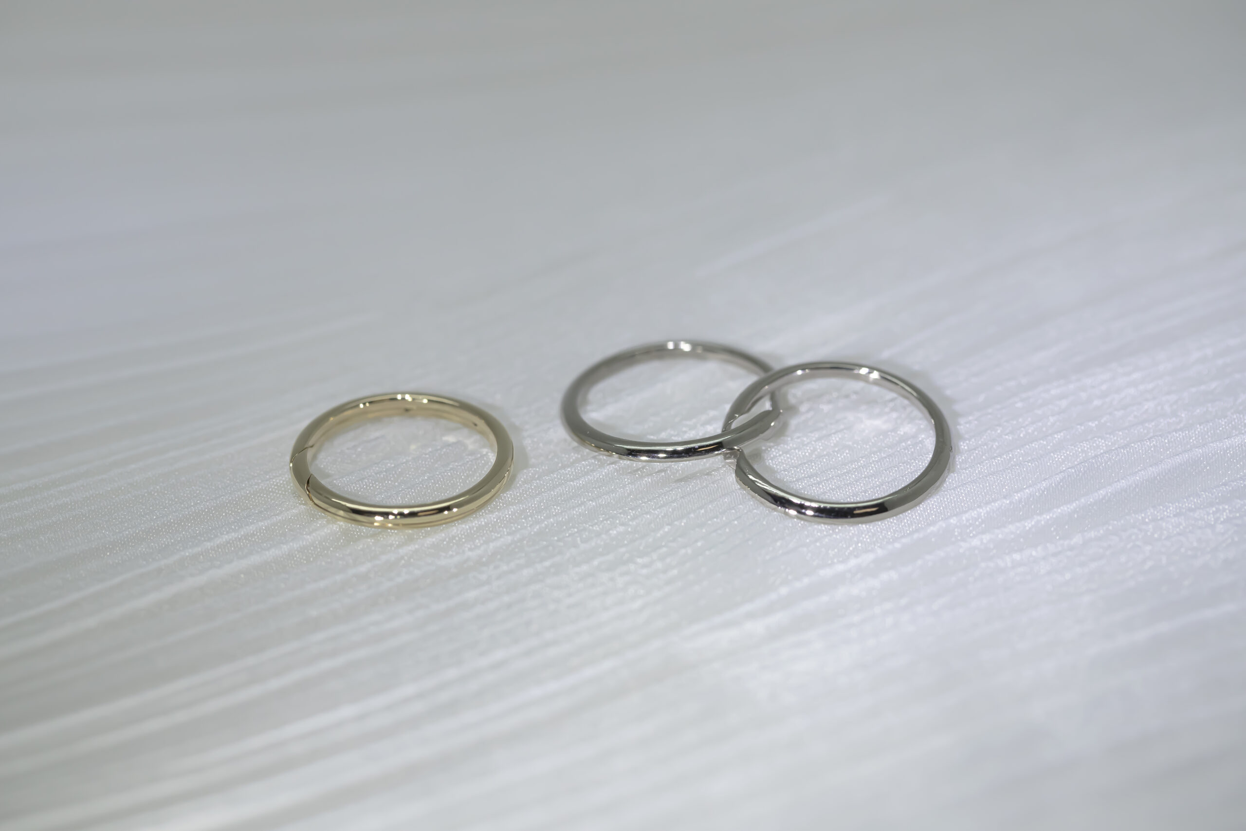 Or gris palladié 18 carats, Or jaune 18 carats, Or rose 18 carats
